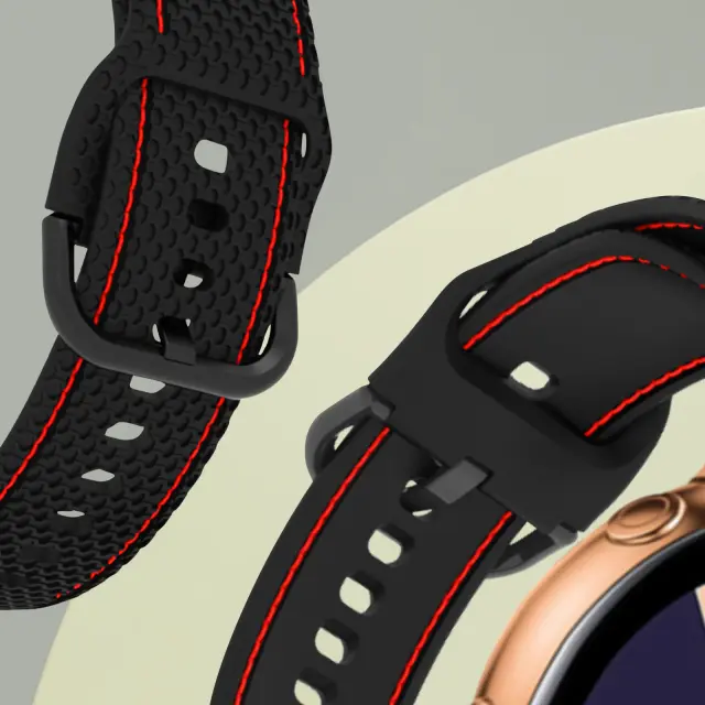 Paš?ek za Samsung Galaxy Watch 5 / Watch 5 Pro / Watch 4 Classic / Watch 4 iz silikona, dvobarvni šivi - ?rn / rde?
