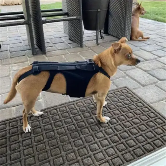 Podpora pri okrevanju hrbtenice: Ta pas za podporo hrbta za pse je posebej zasnovan za pomoč pri okrevanju po poškodbah hrbtenice, saj zagotavlja bistveno podporo in stabilnost hrbtenici. Pomaga omejiti gibanje in preprečiti nadaljnje poškodbe, kar vašemu psu omogoča udobno in učinkovito zdravljenje. Idealen za pse, ki okrevajo po IVDD, operaciji ali drugih stanjih hrbtenice, ta pas spodbuja pravilno poravnavo in zmanjšuje obremenitev prizadetega območja. Nastavljivi trakovi zagotavljajo tesno in varno prileganje, medtem ko zračni material ohranja udobje vašega psa med daljšo uporabo. Ta podporni jopič je ključno orodje pri rehabilitaciji vašega psa, saj mu pomaga povrniti mobilnost in izboljšati kakovost življenja. Primeren je tudi za pse s kronično bolečino v hrbtu ali šibkostjo, saj nudi stalno podporo in lajšanje bolečin.