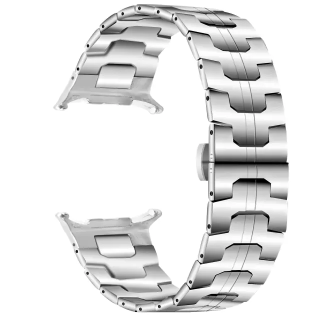 Vrhunski material: Izdelan iz visokokakovostnega nerjavečega jekla, ta pašček ponuja izjemno vzdržljivost in eleganten, sodoben videz. Robustna konstrukcija zagotavlja, da lahko prenese vsakodnevno obrabo in ohranja svoj videz skozi čas. Gladka površina zagotavlja udoben občutek na koži, zaradi česar je idealen za dolgotrajno nošenje. Njegova odpornost proti koroziji in rji zagotavlja dolgotrajen pripomoček, ki dopolnjuje vaš Samsung Galaxy Watch7 47mm.