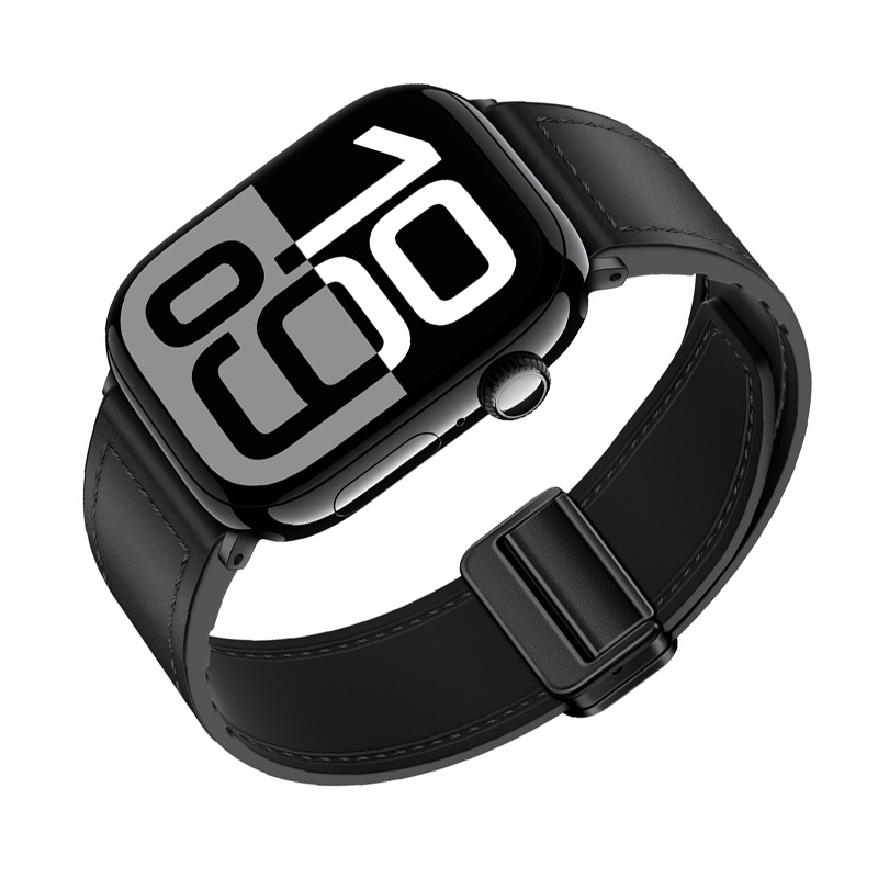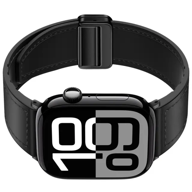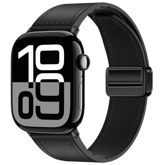 Pašček iz pravega usnja z magnetnim zapiranjem za Apple Watch Series 8/9/Ultra 2 Black S