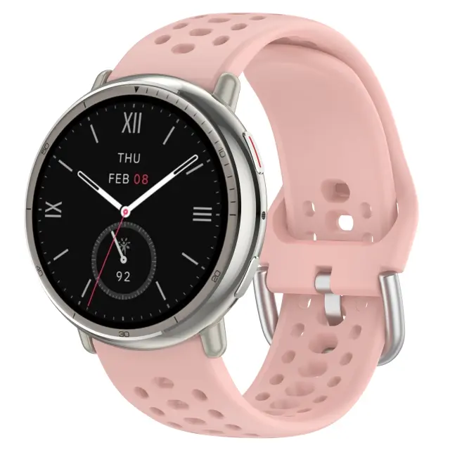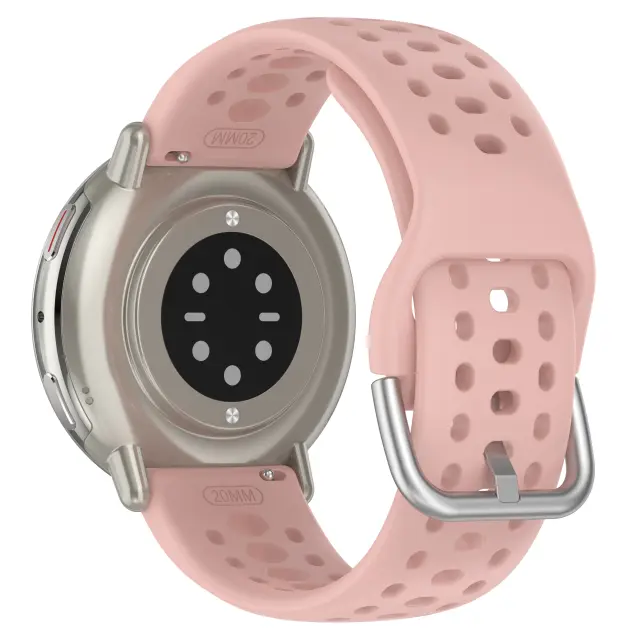 Zračna zasnova: Ostanite hladni in suhi z našo inovativno zračno zasnovo. Strateško nameščene perforacije na silikonskem paščku omogočajo optimalen pretok zraka, preprečujejo nabiranje znoja in ohranjajo vaše zapestje udobno. Ta pašček za Active 2 je idealen za športne in fitnes aktivnosti, saj zagotavlja maksimalno prezračevanje in zmanjšuje vlago. Zračna zasnova zapestnice ne le povečuje udobja, temveč tudi preprečuje vonjave, ohranja vaš pašček za uro svež in čist, tudi po dolgotrajni uporabi. Uživajte v suhi in udobni izkušnji, ne glede na to, kako intenzivna je vaša vadba s tem 22 mm paščkom za uro.