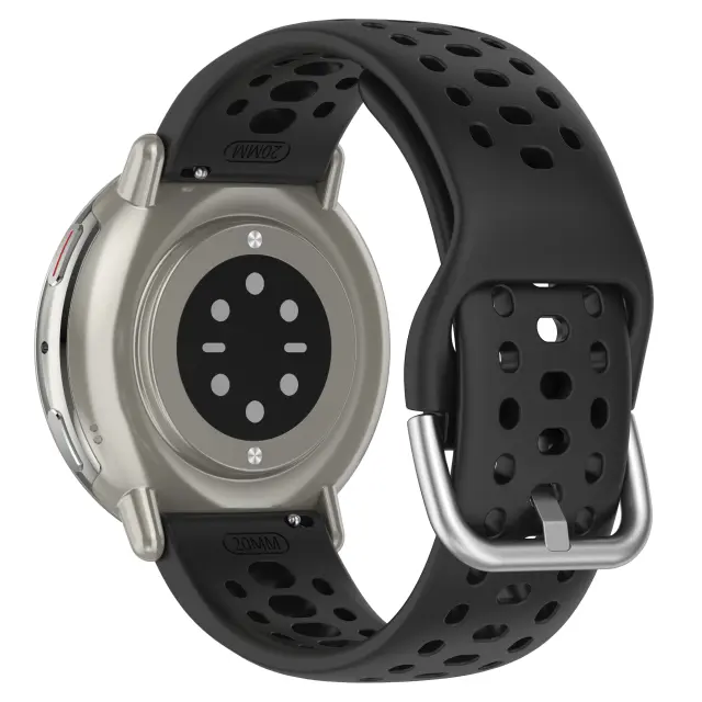 Zračna zasnova: Ostanite hladni in suhi z našo inovativno zračno zasnovo. Strateško nameščene perforacije na silikonskem paščku omogočajo optimalen pretok zraka, preprečujejo nabiranje znoja in ohranjajo vaše zapestje udobno. Ta pašček za Active 2 je idealen za športne in fitnes aktivnosti, saj zagotavlja maksimalno prezračevanje in zmanjšuje vlago. Zračna zasnova zapestnice ne le povečuje udobja, temveč tudi preprečuje vonjave, ohranja vaš pašček za uro svež in čist, tudi po dolgotrajni uporabi. Uživajte v suhi in udobni izkušnji, ne glede na to, kako intenzivna je vaša vadba s tem 22 mm paščkom za uro.