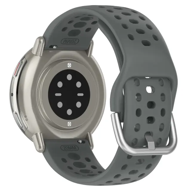 Zračna zasnova: Ostanite hladni in suhi z našo inovativno zračno zasnovo. Strateško nameščene perforacije na silikonskem paščku omogočajo optimalen pretok zraka, preprečujejo nabiranje znoja in ohranjajo vaše zapestje udobno. Ta pašček za Active 2 je idealen za športne in fitnes aktivnosti, saj zagotavlja maksimalno prezračevanje in zmanjšuje vlago. Zračna zasnova zapestnice ne le povečuje udobja, temveč tudi preprečuje vonjave, ohranja vaš pašček za uro svež in čist, tudi po dolgotrajni uporabi. Uživajte v suhi in udobni izkušnji, ne glede na to, kako intenzivna je vaša vadba s tem 22 mm paščkom za uro.