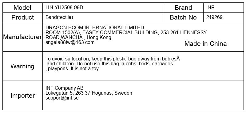 Da se izognete zadušitvi, hranite to plastično vrečko stran od dojenčkov in otrok. Te vrečke ne uporabljajte v zibelkah, posteljah, vozičkih, stajicah. To ni igrača.