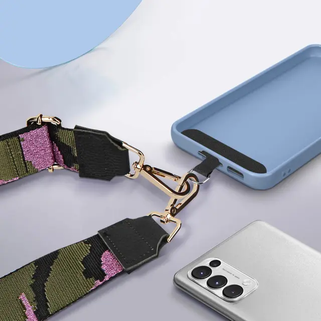 Klasicen pas za pametni telefon s kravjim vzorcem. Pašcek za telefon z blešcecim kamuflažnim dizajnom, ki polepša nacin nošenja telefona. Trendovski naramni trak za pametni telefon, ki je združljiv z ohišjem zahvaljujoc priloženemu pritrdilnemu jezicku.