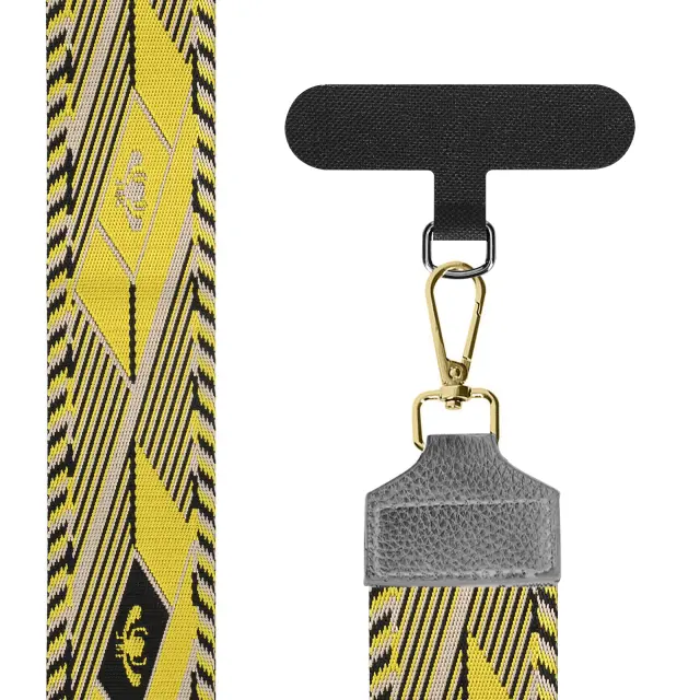 Naramnica za pametni telefon Lagio Lemon yellow kolekcija. Pašcek za telefon v barvah limone za polepšanje nošenja telefona. Trendovski naramni trak za pametni telefon, ki je združljiv z ohišjem zahvaljujoc priloženemu pritrdilnemu jezicku.