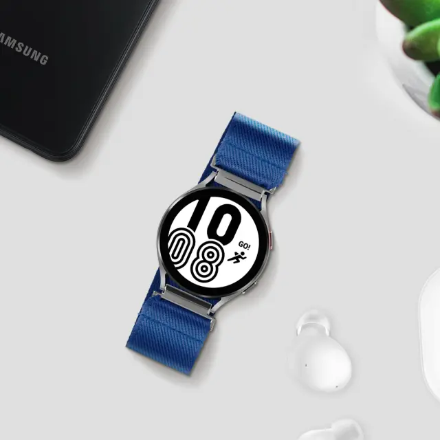 Pašcek za uro 20 mm Samsung Galaxy Watch 4 Classic / Watch 4 / 5 in 5 Pro, tkan in prilagodljiv - moder