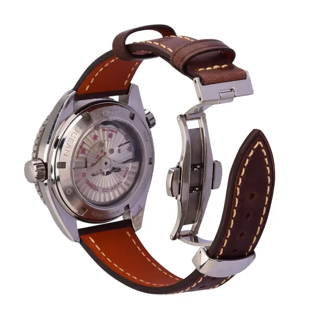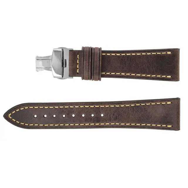 Vrhunsko goveje usnje: Ta pašček za uro, izdelan iz vrhunskega govejega usnja, ponuja razkošen videz in občutek. Elegantno se stara in sčasoma razvije edinstveno patino, ki dodaja njen značaj.