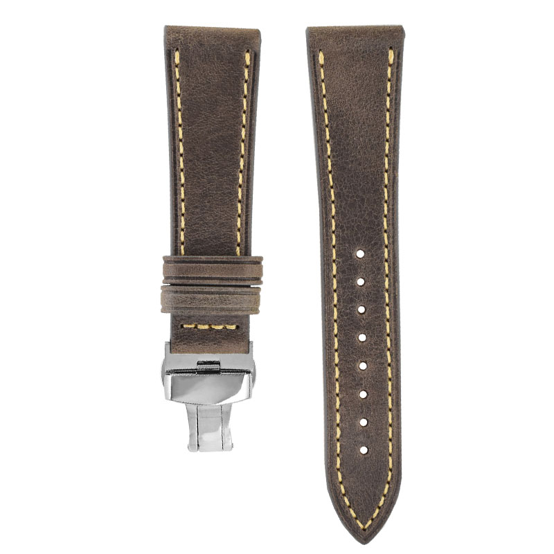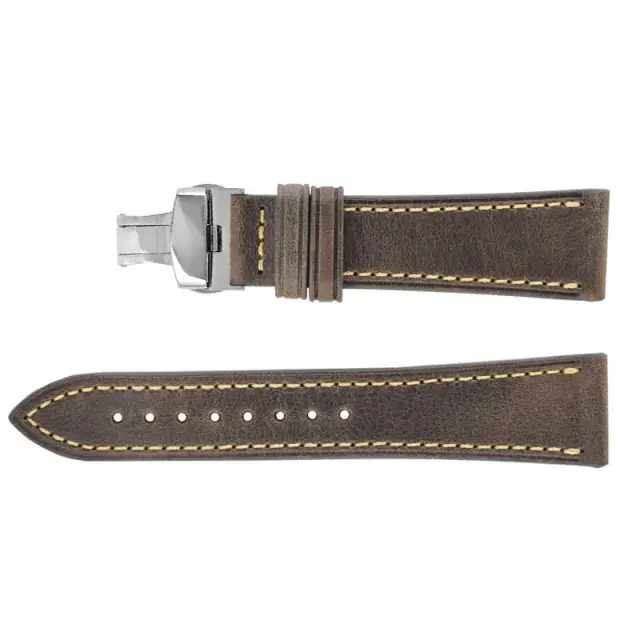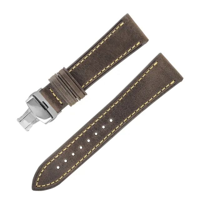 Vrhunsko goveje usnje: Ta pašček za uro, izdelan iz vrhunskega govejega usnja, ponuja razkošen videz in občutek. Elegantno se stara in sčasoma razvije edinstveno patino, ki dodaja njen značaj.