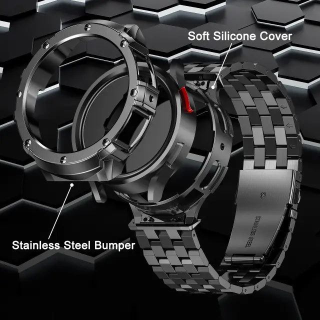 Vrhunsko nerjaveče jeklo: Ta pašček za uro, izdelan iz visokokakovostnega nerjavečega jekla, ponuja izjemno trdnost in odpornost ter zagotavlja dolgotrajno delovanje. Njegova robustna konstrukcija je odporna na vsakodnevno obrabo in ohranja svoj brezhiben videz skozi čas.