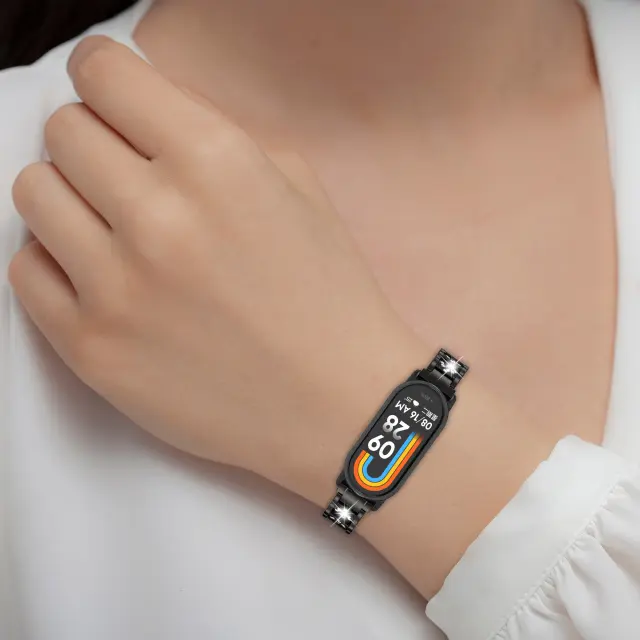 Eleganten dizajn z okrasnimi kamni: ta pas za uro Xiaomi ima luksuzen dizajn, ki vaši vsakodnevni obleki doda pridih elegance. Razpored okrasnih kamenčkov in njihov lesk bo še en okusen detajl na vašem zapestju.