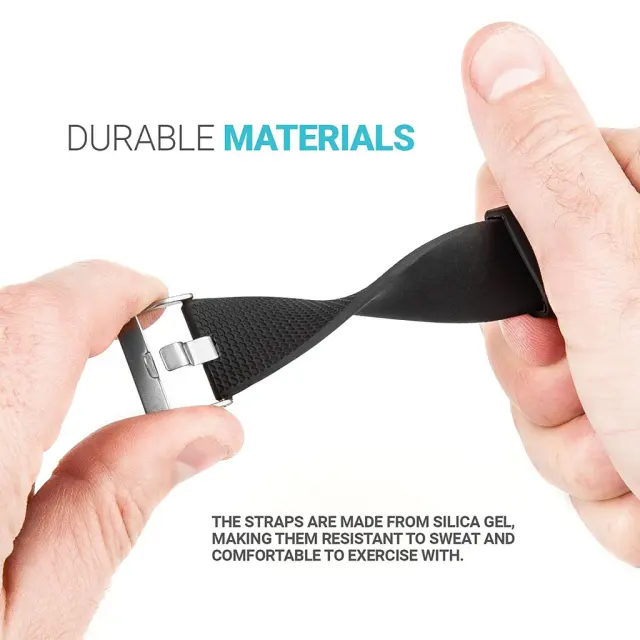 Za aktiven življenjski slog: pas za uro je izjemno vzdržljiv in dolgotrajen ter odporen na vodo in znoj. Zapestnica je izdelana iz trpežnega, kakovostnega in okolju prijaznega silikonskega materiala. Ta zapestnica Fitbit je prilagojena za visokointenzivne vadbe in hkrati enako elegantna za več drugih kontekstov.