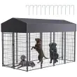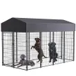 Trajna in vremensko odporna konstrukcija: Galvanizirana kovinska železna kletka s premazom za visoko trdnost in odpornost proti rji. Prevleka iz 210D oxford tkanine zagotavlja zaščito pred vetrom, vremenskimi vplivi in senco za vaše pse.