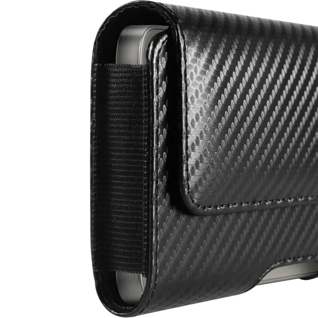 Pasna torbica iz ogljika za telefone 7 palcev z vrtljivim klipom, Črna