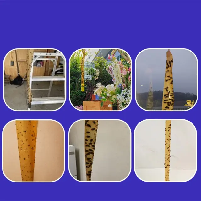 Učinkovita past za muhe: lepljiva past za muhe privablja muhe in druge žuželke, ki se enostavno prilepijo na zvitek papirja za muhe, kar učinkovito rešuje problem muh v zaprtih prostorih.