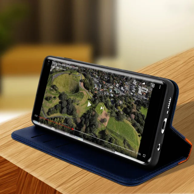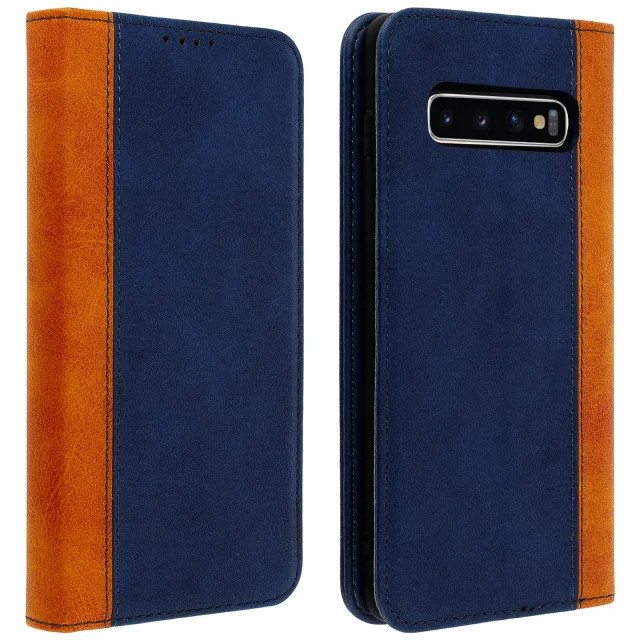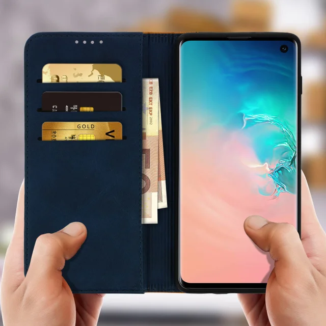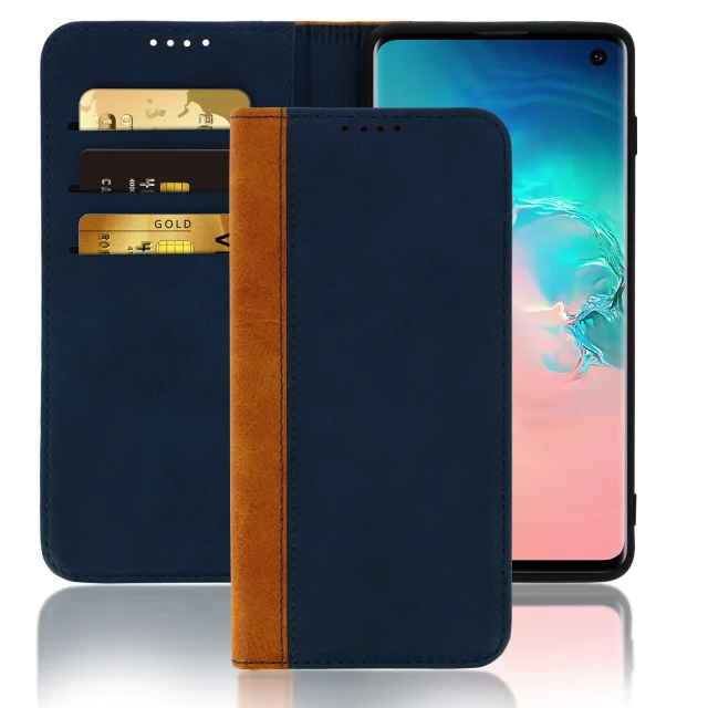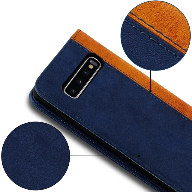 Patiniran dvobarvni ovitek za denarnico v videzu usnja s šivi na vrhu - polnocno modra str. Samsung Galaxy S10