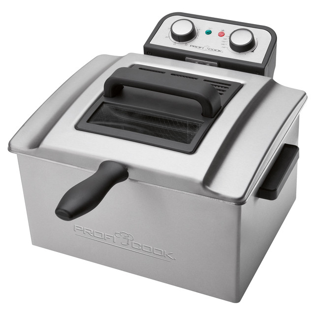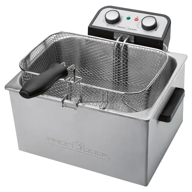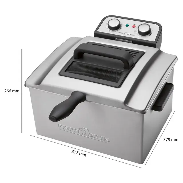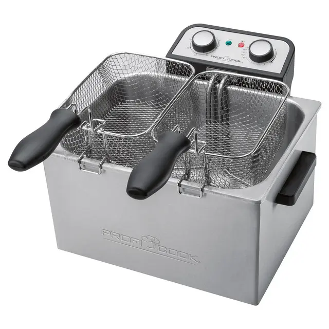 Profesionalni cvrtnik z 2 manjšima košarama in 1 veliko košarico za različne vrste hrane. Glavni material za izdelavo je bilo nerjavno jeklo, ki je uporabljeno za ohišje, pokrov, grelni element in posodo za olje. Prednost je, da je grelni element potopljen neposredno v olje. Segrevanje je tako zelo hitro in brez vonja. Posoda za olje ima prostornino 5 litrov in jo je mogoče odstraniti za priročno čiščenje. Temperaturo cvrtja lahko nastavite med 130 in 190 °C. Časovnik lahko nastavite za največ 30 minut. Cvrtnik je opremljen s filtrom za vonjave in hlape ter zaščito pred pregrevanjem. Napajanje je 230 V, 50/60 Hz, moč pa je največ 3 270 W.
