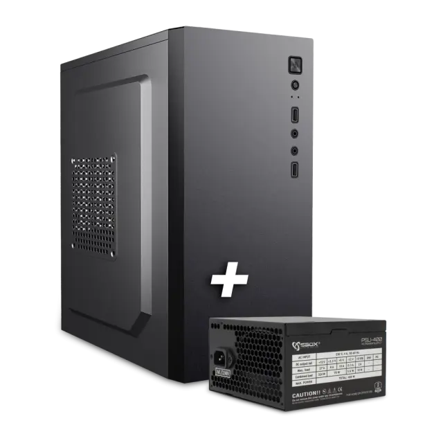 Tip: Micro ATX Mid Tower Barva: Črna Material: Kovina Napajalnik: SBOX PSU-400, 400W Združljivost MBO: Micro-ATX / ITX Razširitve: 2 x notranji 3,5'', 1 x notranji 2,5'', 4 vodoravne Sprednja plošča: 2 x USB 2.0 x 2 + HD Audio Točke za pritrditev ventilatorja: zadaj 1 x 80 mm (izbirno), ob strani 1 x 120 mm (izbirno) GPE Maks. dolžina (mm): 250 CPE Max. Višina (mm): 140 Mere artikla (mm): 280x165x350 Dimenzije paketa (mm): 390x195x336 Teža (g): 3400
