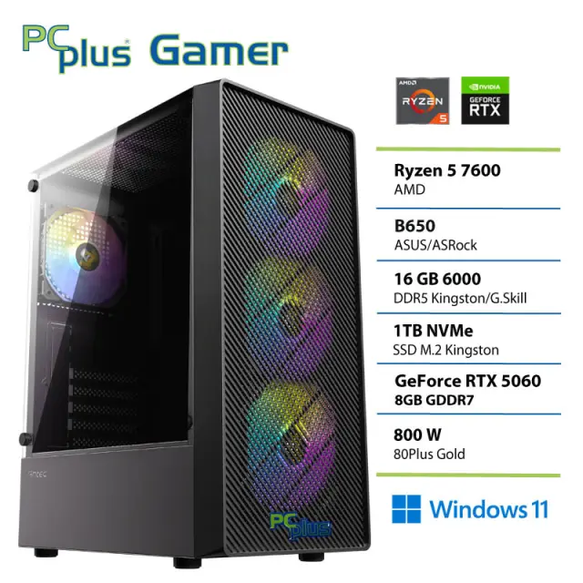 Procesor deluje v povezavi s 16GB 6000MT/s DDR5 KINGSTON/G.Skill pomnilnika. Za bliskovit zagon sistema, iger in vseh podatkov je tukaj izjemno hitri 1 TB KINGSTON M.2 PCIe 4.0 NVMe SSD, s katerim boste dosegli nov vrh hitrosti in učinkovitosti v shranjevanju podatkov. Vse skupaj povezuje B650 osnovna plošča z 2,5 Gb Ethernet priključkom.