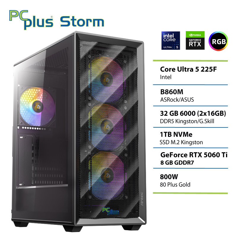 Namizni računalnik PCPLUS Storm Ultra 5 225F, 32 GB RAM, 1 TB SSD, RTX 5060 Ti 8GB|Gaming