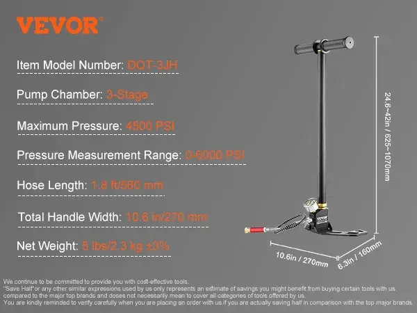 • Močna 3-stopenjska črpalka: Dosezite do 4500 PSI brez napora z našo visokotlačno PCP črpalko, pri čemer prihranite 30% energije v primerjavi z ročnimi črpalkami.
