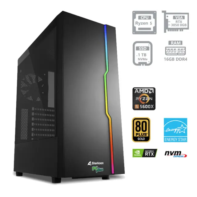 PCPLUS Gamer Ryzen 5 5600X 16GB 1TB M.2 NVMe SSD GeForce RTX3050 8GB gaming namizni računalnik