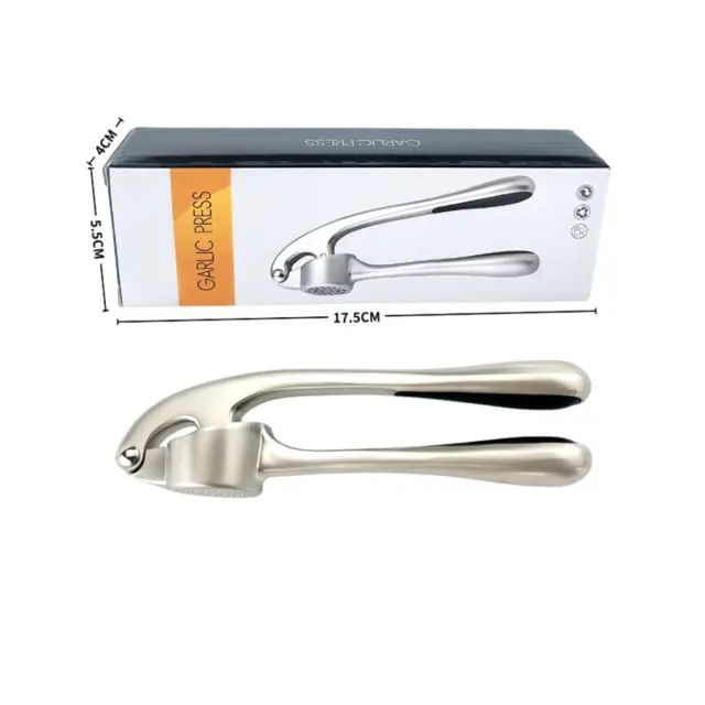 Učinkovito stiskanje česna: Z našim stiskalnikom za česen Pearl Nickel boste brez težav stisnili česen. Poslovite se od zamudnega sekljanja z nožem, ki preprečuje, da bi se stroki česna razpršili in prilepili na rezilo. Ta kuhinjski drobilnik česna zagotavlja učinkovite in dosledne rezultate vsakič, še posebej pri pripravi receptov, ki zahtevajo veliko količino zdrobljenega česna. Njegova inovativna zasnova poveča izkoristek česna in vam omogoča, da z minimalnim naporom izvlečete vsak košček okusa. Idealen tako za profesionalne kuharje kot za domače kuharje, bo ta pripomoček revolucionarno spremenil vašo rutino priprave česna. Izdelan iz cinkove zlitine in ABS-a, ta stiskalnik za česen hitro obdela stroke česna.