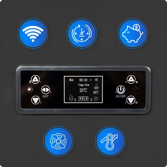 Peč na pelete 12 kW – jeklena koza, Wi-Fi, termostat, komplet cevi THUNDER® ARIA-BLACK