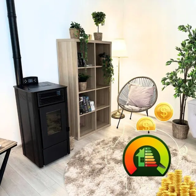 Peč na pelete – Wi-Fi upravljanje, 16 kg rezervoar, avtomatsko ogrevanje THUNDER® SOPHIA-BLACK 8,1 kW