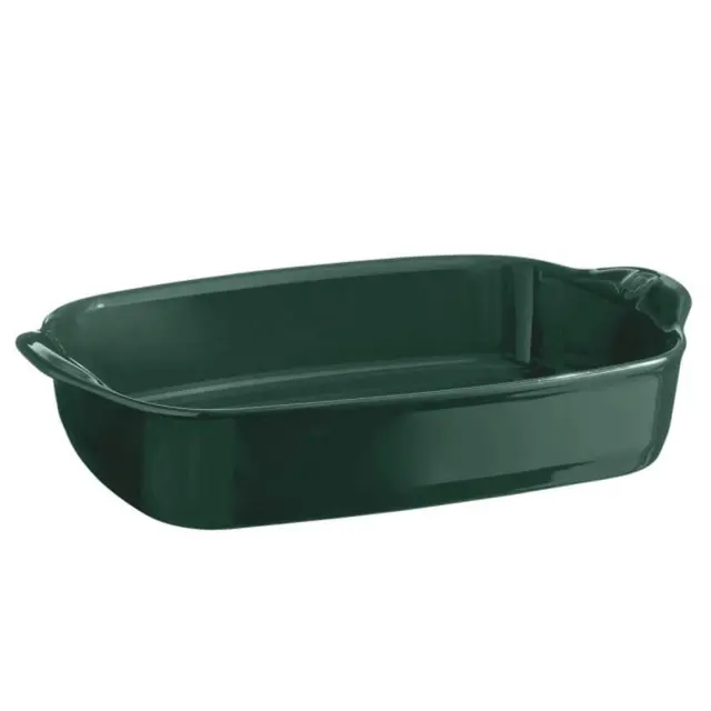 Pravokoten keramičen pekač Emile Henry je izdelan iz kvalitetne keramike HR® (High Resistance), ki temperaturo počasi razširi po posodi, da se jed enakomerno skuha oz. speče do njene sredice, je bolj aromatična in okusnejša. Vrhunska keramika dlje časa zadrži temperaturo, zato ostane hrana na mizi še nekaj časa topla in primerna za postrežbo. Pekač Emile Henry lahko postavite v pečico do 270° C ali pod žar kar iz zamrzovalnika, saj je odporen na termični šok. Idealen je za gratiniranje, za lazanje, pečenke in pecivo. Elegantna oblika ponuja mešanico tradicije in modernosti, subtilna zelena barva pa je simbol moči in poživljanja, ki je navdihnjena z odtenki zimzelenega iglavca. Zelo odporna glazura ščiti površino pred praskami in se lahko redno čistiti v pomivalnem stroju, ne da bi izgubila svojo barvo. Vsi izdelki Emile Henry so brez svinca, kadmija in niklja. Notranje dimenzije pekača: 35,5x25,5x7 cm