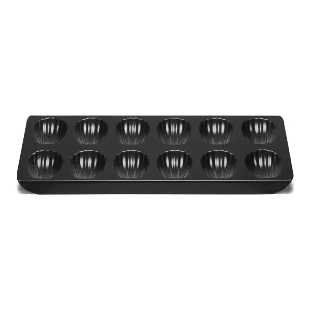 PATISSE ČRN PEKAČ ZA MAGDALENICE CLASSIQUE dolžine 40 cm je prevlečen s premazom proti sprijemanju. V njem boste lahko pripravili 12 magdalenic v velikosti približno 7,5 x 5 cm.
