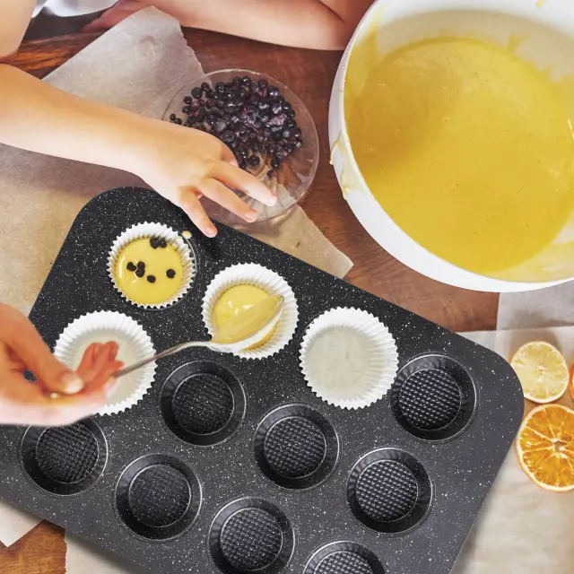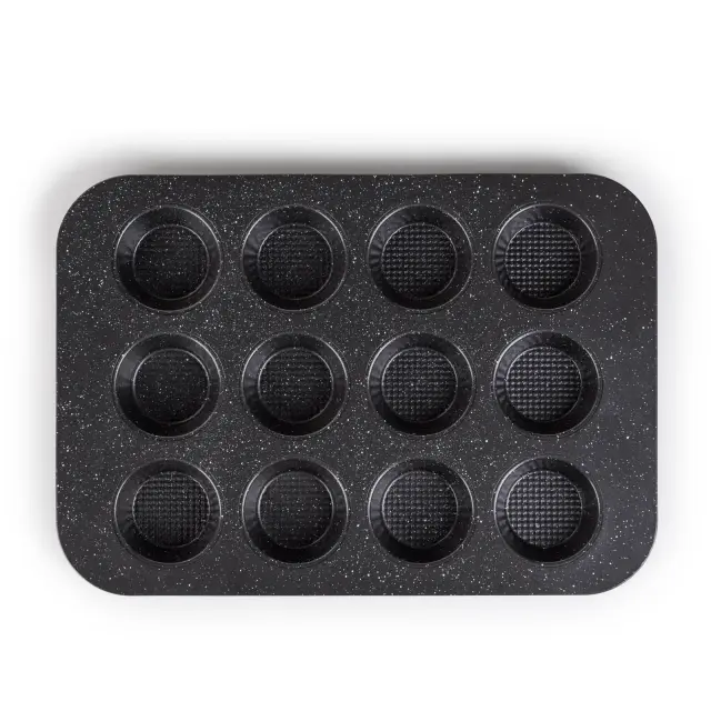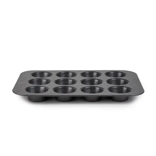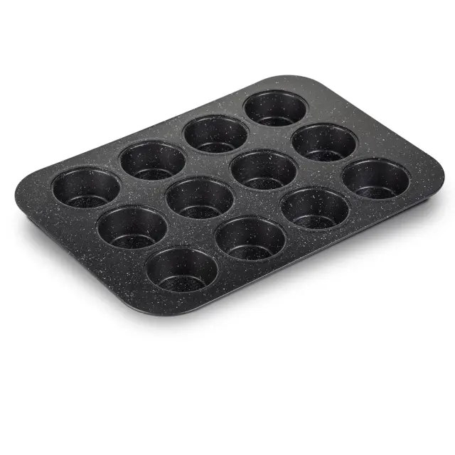Pekač za muffine Rosmarino BakerPRO je vse, kar potrebuješ za popolno pripravo sočnih in okusnih sadnih, čokoladnih ali zelenjavnih mafinov. Pekač v izgledu marmorja ima neoprijemljiv premaz ILAG švicarske kakovosti, zaradi česar omogoča enakomerno razporeditev toplote in peko z minimalno maščobe, saj se hrana ne oprijema pekača. Zaradi sestave iz karbonskega jekla je pekač odporen tudi na visoke temperature, do 230 °C, primeren za hrambo v hladilniku in zamrzovalniku. Trpežna in zanesljiva zasnova za profesionalne pekovske rezultate.