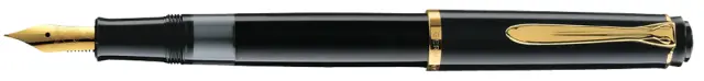 pozlačeno pero iz nerjavečega jekla, pozlačen batni mehanizem sponke za pelikanov kljun, okence za pregled črnila, ohišje iz visokokakovostnega materiala, pozlačen obroč na polnilnem ročaju (994012) Pomembni podatki: Izvedba: za desničarje in levičarje uporabniki Širina črte: Širina konice: Bcase