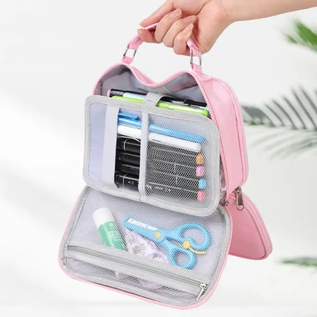 Zasnova z več predelki: Ta peresnik s praktično zasnovo z več predelki omogoča učinkovito organizacijo. Razdeljeni deli ohranjajo vaše pisalne pripomočke lepo ločene in preprečujejo, da bi se kotalili ali poškodovali. Preprosto poiščite, kar potrebujete, ne da bi brskali po natrpani torbi.