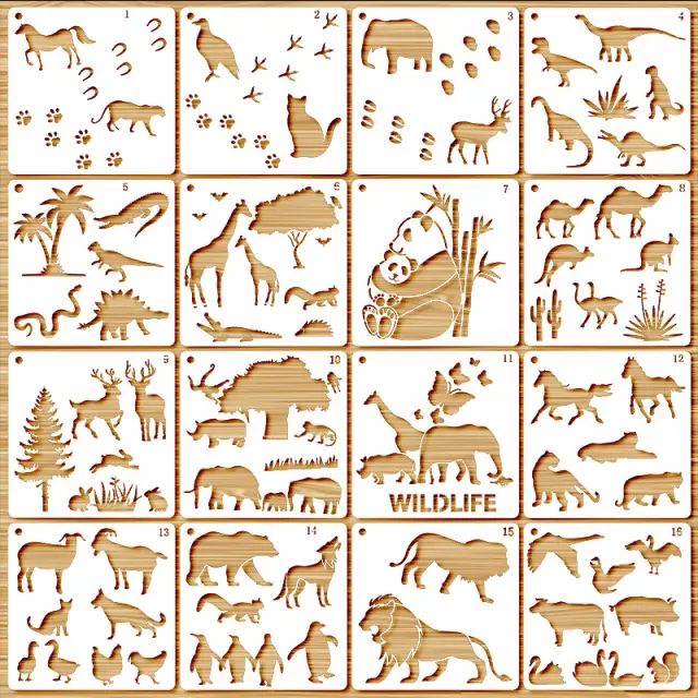 Ta komplet vsebuje 16 kvadratnih predlog, od katerih ima vsaka zapletene oblike živali in rastlin z vsega sveta. Profesionalno zasnovane in izdelane iz visokokakovostnega PET materiala, te šablone zagotavljajo izvrstne podrobnosti.