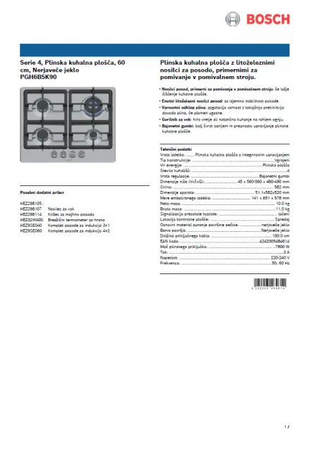 BOSCH PGH6B5K90 plinska kuhalna plošča