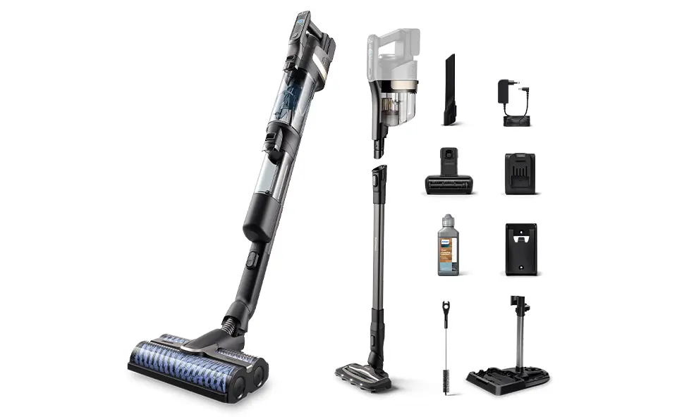Brezžični sesalnik Philips AquaTrio serije 9000 za sesanje in pomivanje tal je nova revolucionarna hibridna rešitev za čiščenje. Celovit sistem, ki enostavno odstrani vso umazanijo na različnih vrstah tal. Uživajte v maksimalni vsestranskosti s 3 funkcijami: samo sesanje, sesanje in pomivanje tal, ročno sesanje.