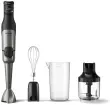 Namestite kompaktni sekljalnik za sekljanje čebule in zelišč, drobljenje oreščkov in še več. S prostornino 0,5 litra je popoln za vsa manjša opravila med pripravljanjem jedi. Z metlico pripravljajte penasto stepeno smetano, svilnato gladko majonezo, popolno maso za palačinke in svoje najljubše solatne prelive. Mešalno palico lahko zamenjate z eno roko s pritiskom gumba. Tako lahko nastavke menjate, ne da bi morali mešalnik odložiti ali umazati pult.