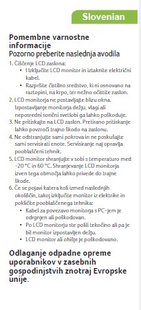 Slike o varnosti izdelka vsebujejo opozorila na embalaži izdelka in lahko vključujejo ključne varnostne informacije, povezane z določenim izdelkom.