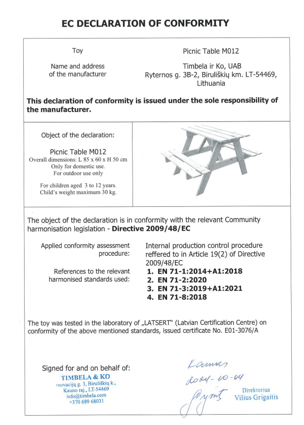 Piknik miza za 2 otroka, trden les jelke - zunanja in notranja uporaba - 60x80xV50 cm - Timbela M012-1