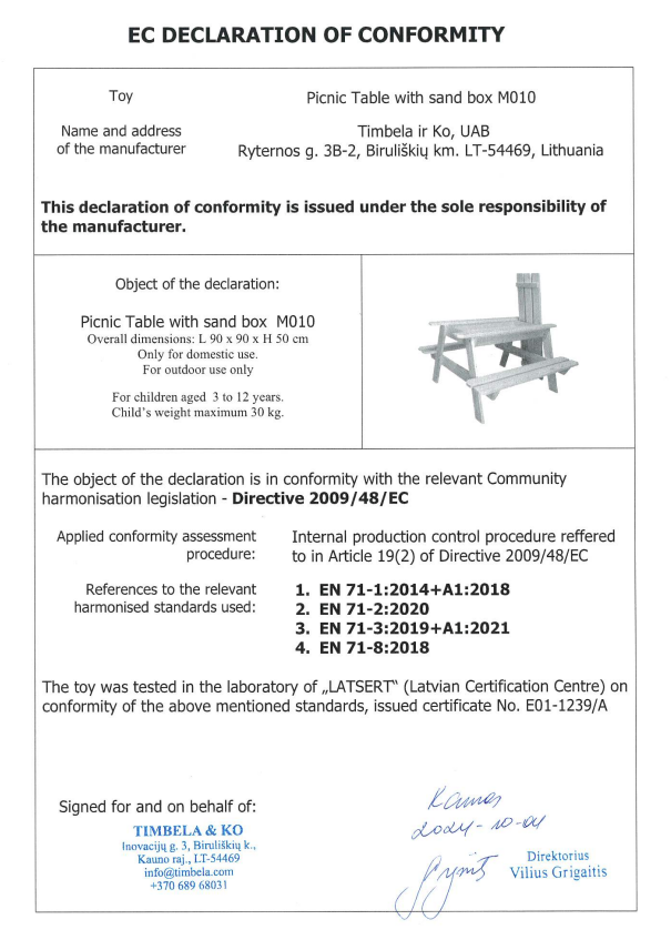 Piknik miza za otroke s peskovnikom, trden les jelke - zunanja in notranja uporaba - 90x90xV50 cm - Timbela M010-1