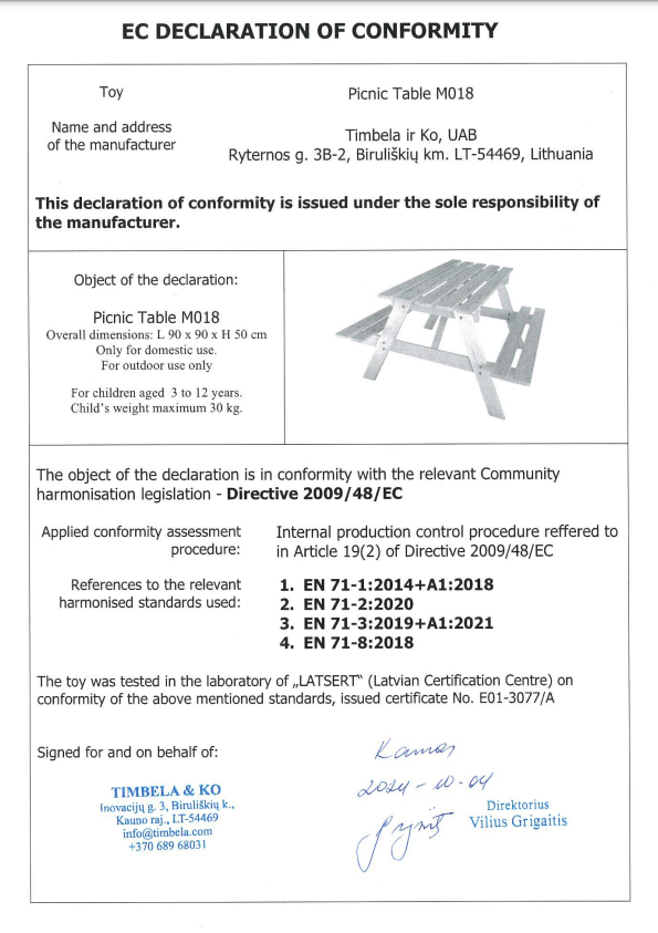 Piknik miza za otroke, trden les jelke - zunanja in notranja uporaba - 90x90xV50 cm - Timbela M018-1