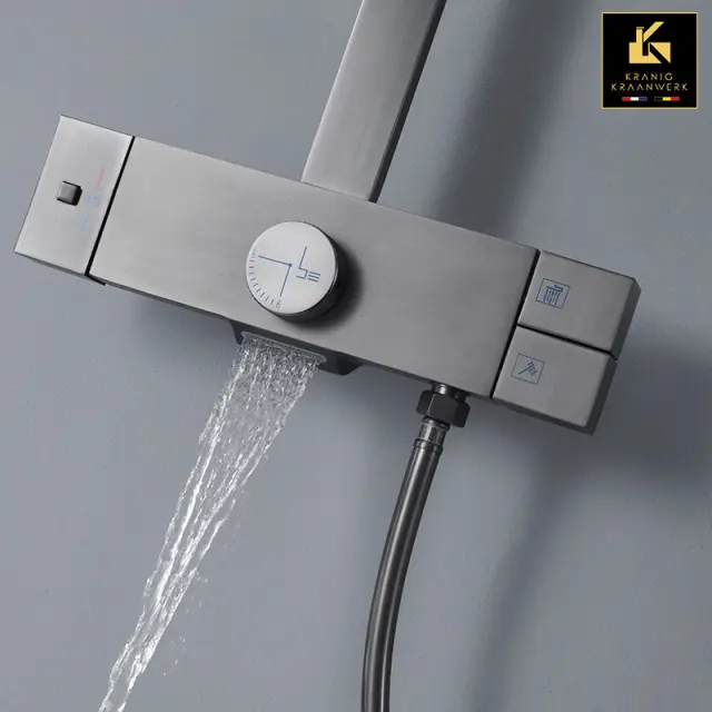 Birthe tuš pipa. Še ena lepo oblikovana pipa lastne znamke Kranig. Nekaj ​​pip je tako lepih in hkrati tako preprostih in praktičnih za uporabo. Pri pipi pogosto vidimo lepo zaobljeno obliko, le redkokdaj pa je bila prha tako praktična in lepa hkrati. Okrogli gumb ne vpliva na to, kje je mogoče nadzorovati temperaturo. Nova tuš pipa vam nudi luksuzno izkušnjo takoj po prvem tuširanju. Kot da bi bila kopalnica resnično nadgrajena :-) Na voljo v barvi: pištolo siva kovina. Brušeno zlato Enostavna namestitev naredi sam na obstoječo cevovod. Dobavljen z vsemi potrebnimi dodatki. Namestitev ali strahovita dela niso potrebna.