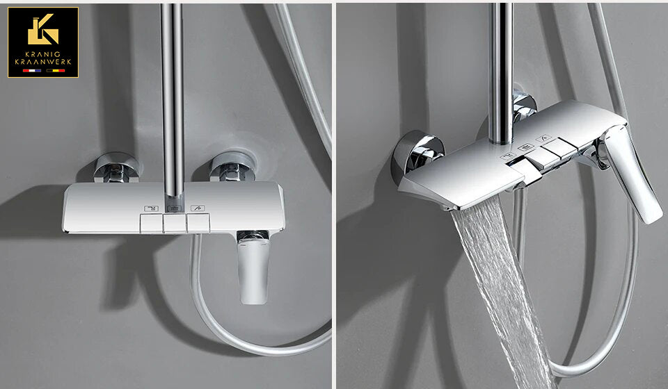 Pipa za prho Cherléne. Gumbi in lepo oblikovana mešalna ročica za upravljanje različnih vidikov tuš pipe. Izjemno praktična, a tudi izjemno lepo oblikovana tuš pipa. Pri pipi pogosto vidimo lepo zaobljeno kotno obliko, le redko pa sta bila palica in tuš glava, tako lepo vključena v dizajn, čudovita celota. Kot bi bila kopalnica resnično nadgrajena :-) Na voljo v: pištolo kovinsko sivi krom črno zlati Enostavna samomontaža na obstoječo cevovod. Dobavljen z vsemi potrebnimi dodatki. Ni potrebna namestitev ali strah.