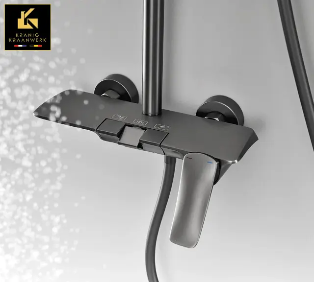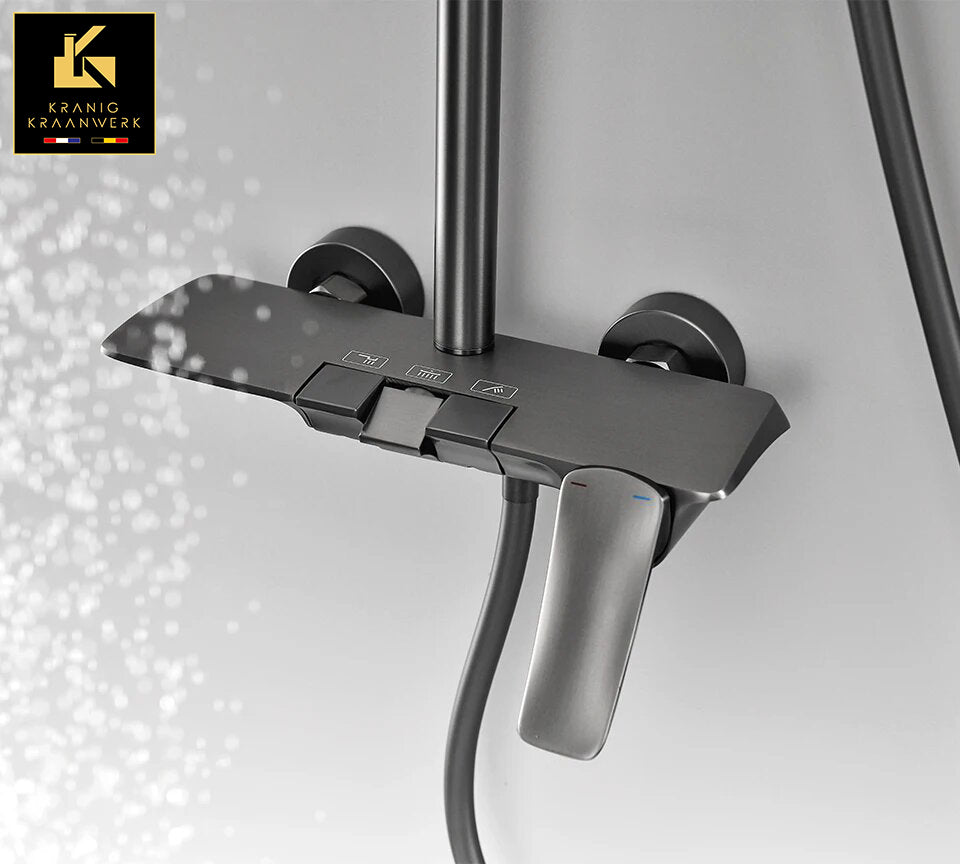 Pipa za prho Cherléne. Gumbi in lepo oblikovana mešalna ročica za upravljanje različnih vidikov tuš pipe. Izjemno praktična, a tudi izjemno lepo oblikovana tuš pipa. Pri pipi pogosto vidimo lepo zaobljeno kotno obliko, le redko pa sta bila palica in tuš glava, tako lepo vključena v dizajn, čudovita celota. Kot bi bila kopalnica resnično nadgrajena :-) Na voljo v: pištolo kovinsko sivi krom črno zlati Enostavna samomontaža na obstoječo cevovod. Dobavljen z vsemi potrebnimi dodatki. Ni potrebna namestitev ali strah.