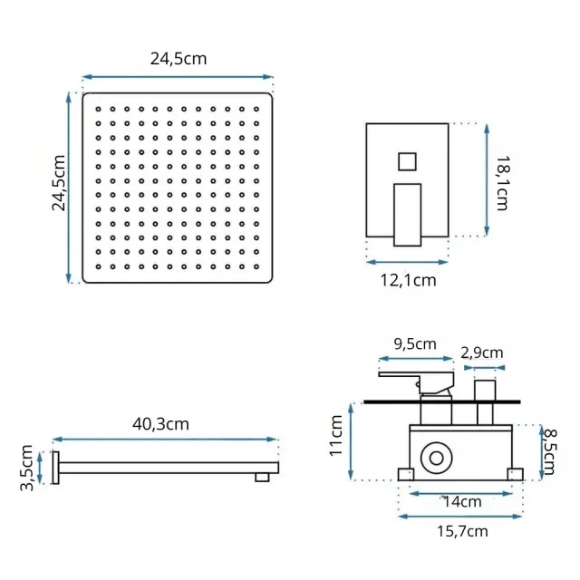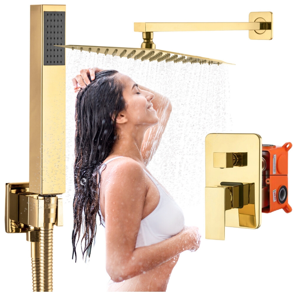 Pipa za tuš, glava za dežno prho, zlati sijaj, vgradna mešalna miza