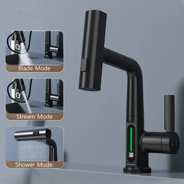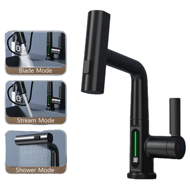 • Vsestranska funkcionalnost vroče in hladne vode: Uživajte v prilagodljivosti tako vroče kot hladne vode, kar to pipo naredi primerno za različne naloge pranja v kopalnici.