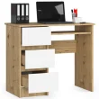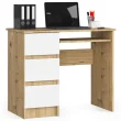 Pisalna miza A-6 v umetniškem hrastu/beli barvi se bo odlično prilegala v otroško in mladinsko sobo, pa tudi v delovni prostor. Njene majhne dimenzije bodo omogočile tudi ureditev prostora za učenje ali delo na daljavo v spalnici ali dnevni sobi. Pisalna miza je prav tako odlična za postavitev majhne, intimne pisarne. Zaradi barve hrastovega lesa pohištvo ustreza tako modernim kot tudi bolj klasičnim stilom pohištva.