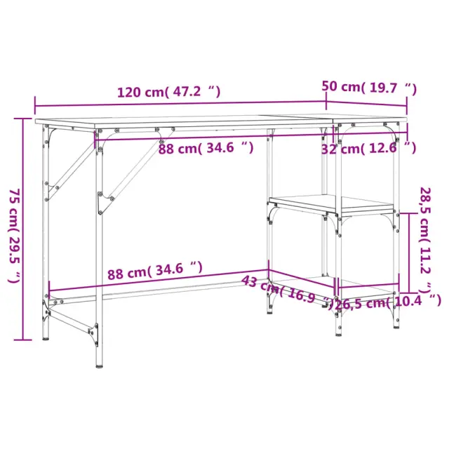 Pisalna miza - pisarniška miza - Računalniška miza sonoma hrast 120x50x75 cm kovina in inženirski les