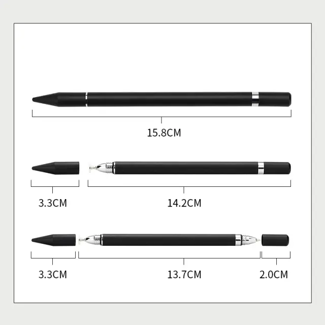 Opomba: Pred uporabo odstranite pokrovčke. Na dveh koncih sta dve različni konici - pero s prozornim diskom se uporablja na elektronskih zaslonih, drugo pero pa je za pisanje na papir, knjigo, zvezek.